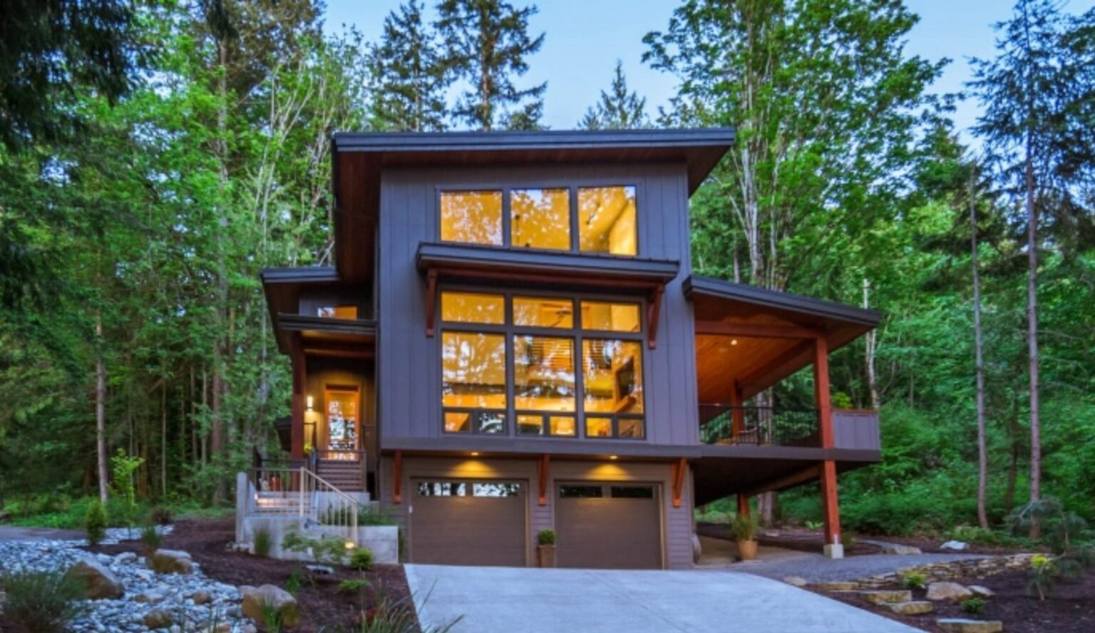 Experience contemporary mountain living in this stunning 3-floor, 3-bedroom, 2-and a half bathroom home. With 2,287 heated square feet of living space (2,696 roofed square feet), this modern mountain retreat offers luxury and comfort.